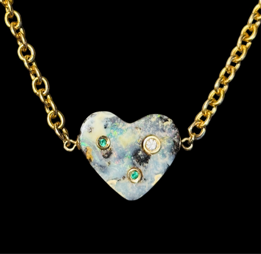 Australian Opal Heart Necklace with Diamond & Emeralds