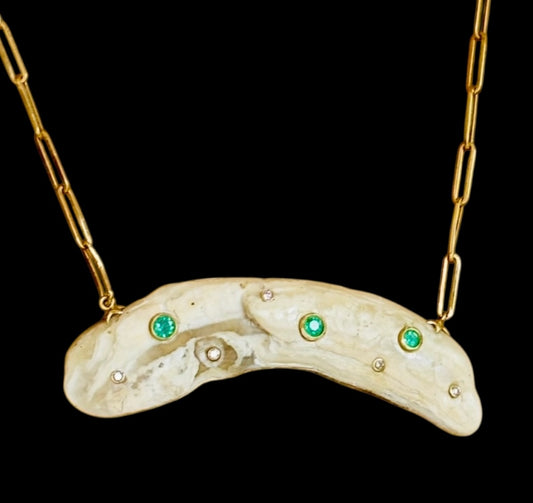 Lapis Evil EyeS Necklace with Diamonds & Emeralds