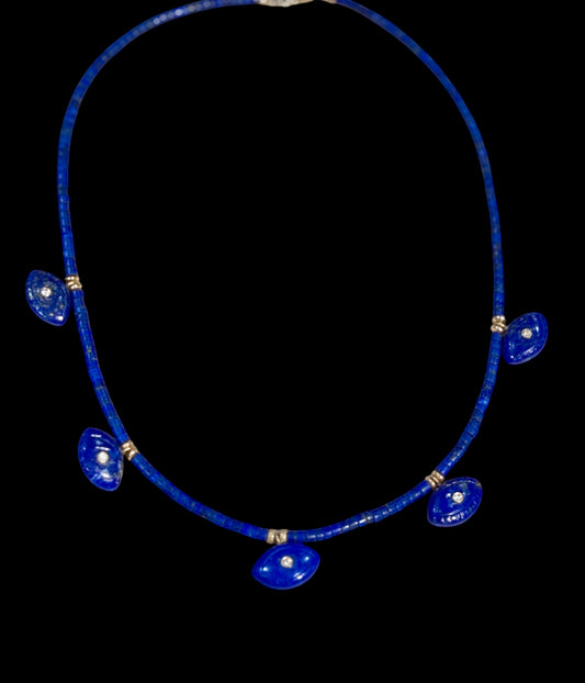 Lapis Evil EyeS Necklace with Diamonds & Emeralds
