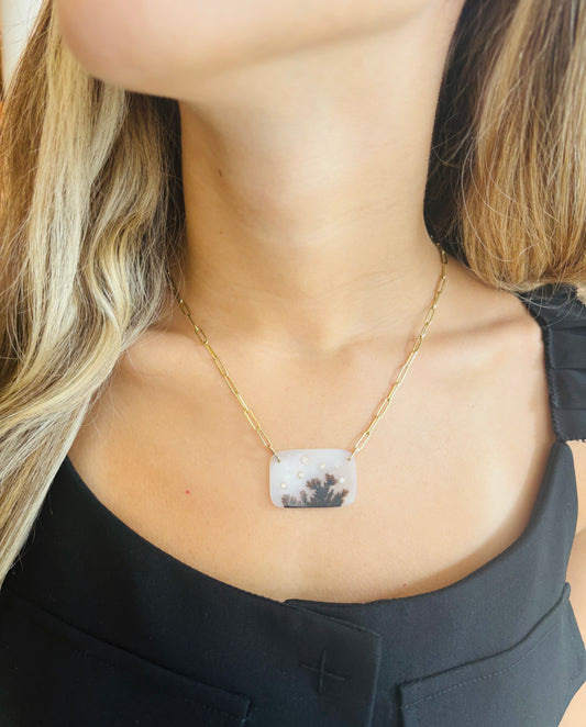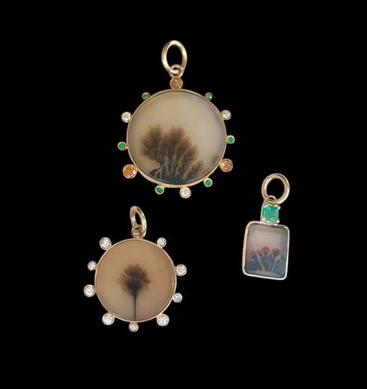 Dendritic Agate Pendant with Emerald & 14k Gold