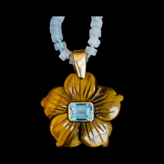 FLORA Pendant, Tiger Eye with Blue Topaz