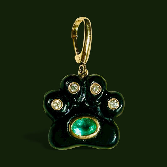 Dog Paw Pendant, Black Onyx, Diamonds & Emerald