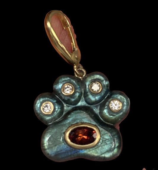 Dog Paw Pendant, Labradorite with Diamonds & Tourmaline