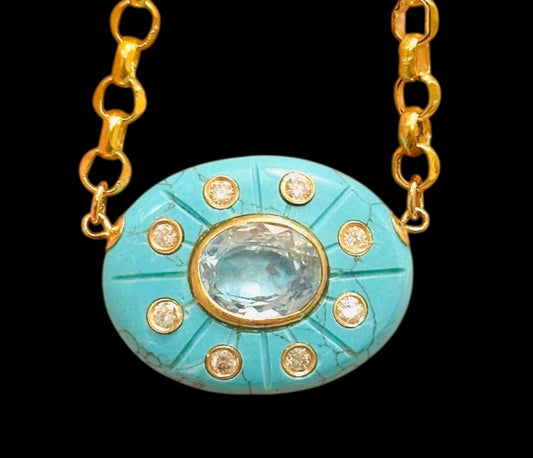 SOL Pendant: Turquoise, Blue Topaz & Diamonds