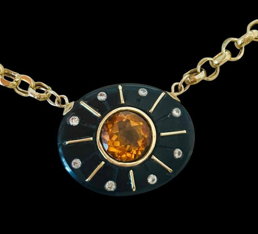 SOL Necklace, Black Onyx with Citrine & Diamonds