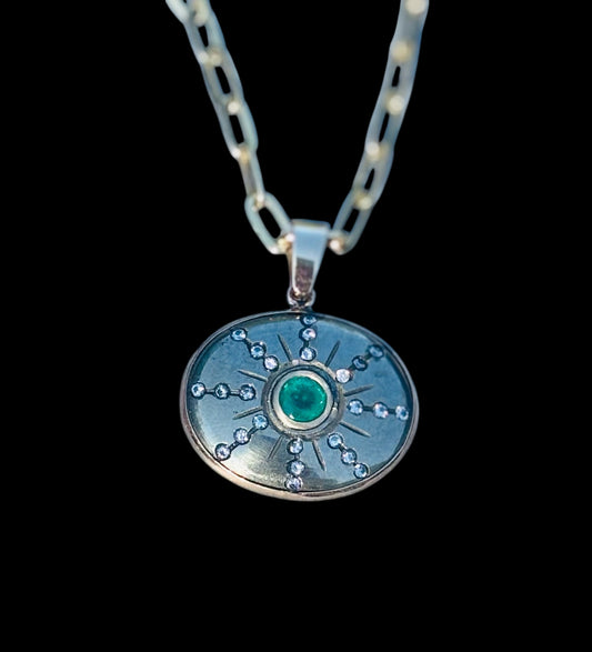 SOL Pendant, Pyrite, Emerald & Diamonds