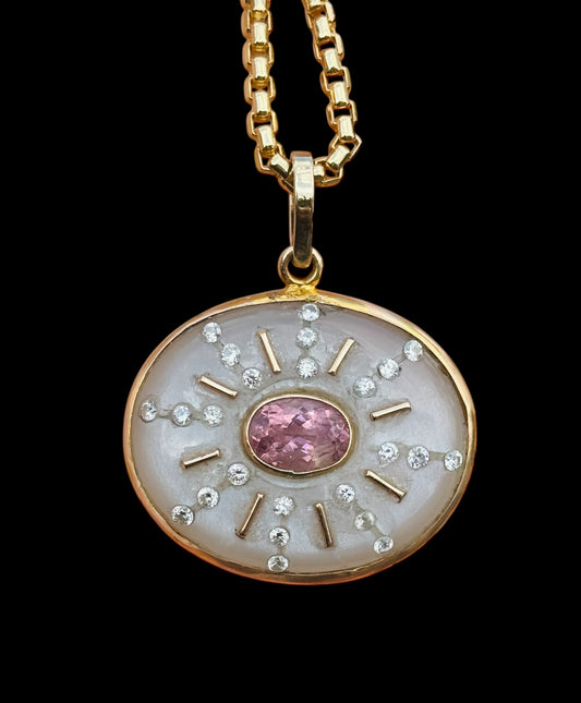 SOL Pendant, Moonstone with Pink Tourmaline & Diamonds