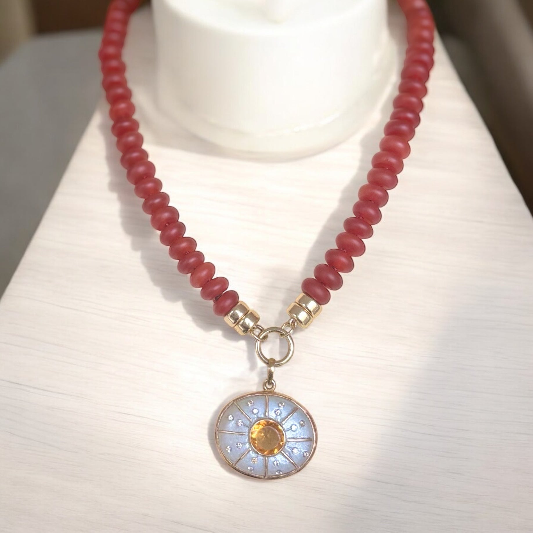 CARNELIAN AND 14K GOLD NECKLACE