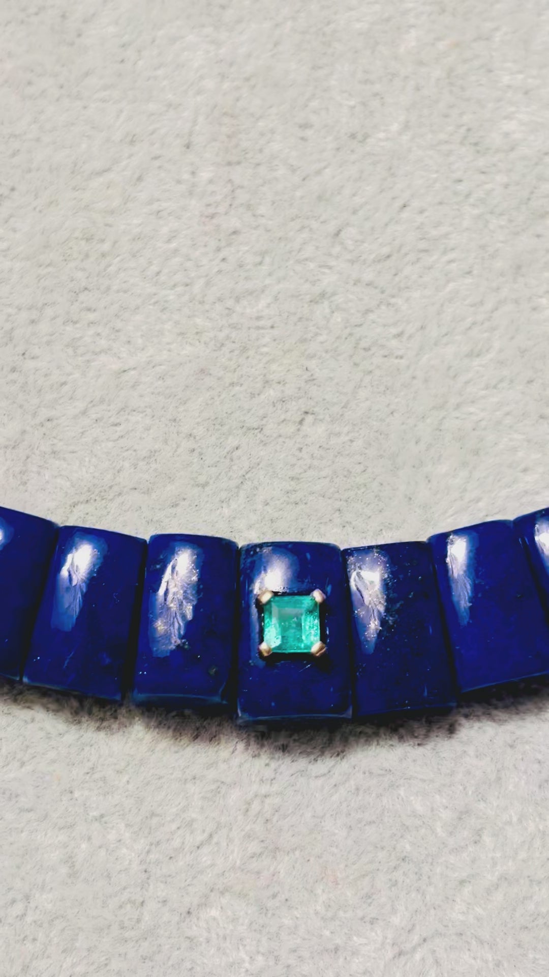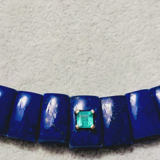 The mini version of our Cleopatra Necklace in lapis with three stunning emeralds.