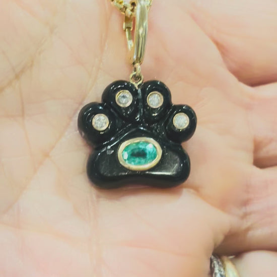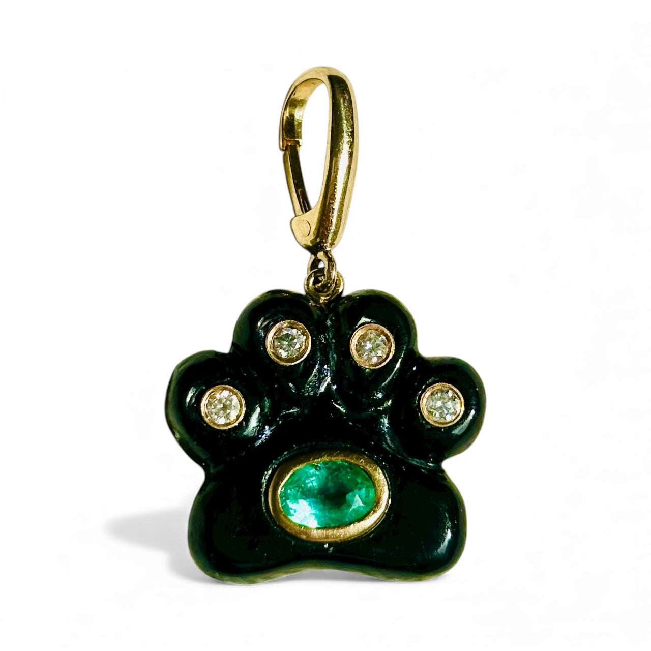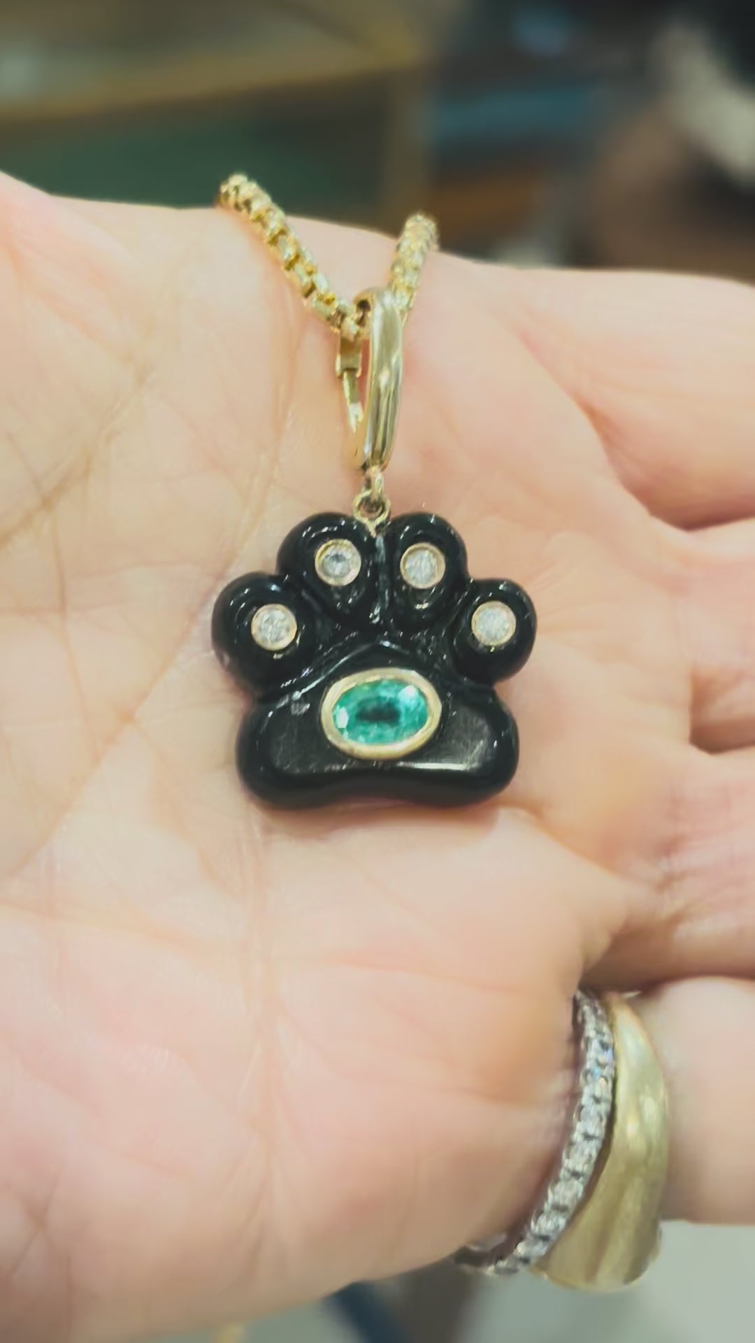 Dog Paw Pendant, Black Onyx, Diamonds & Emerald