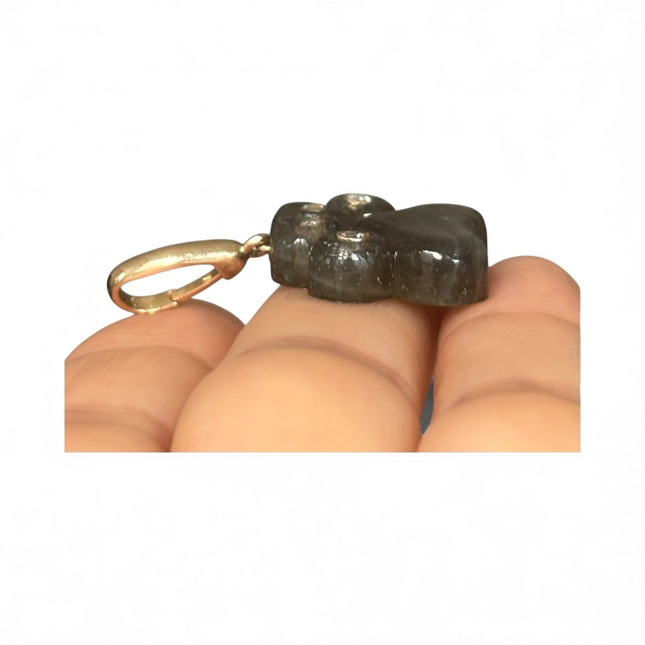 Hand carved labradorite dog paw with four 2mm round diamonds bezeled in gold - one in each paw.