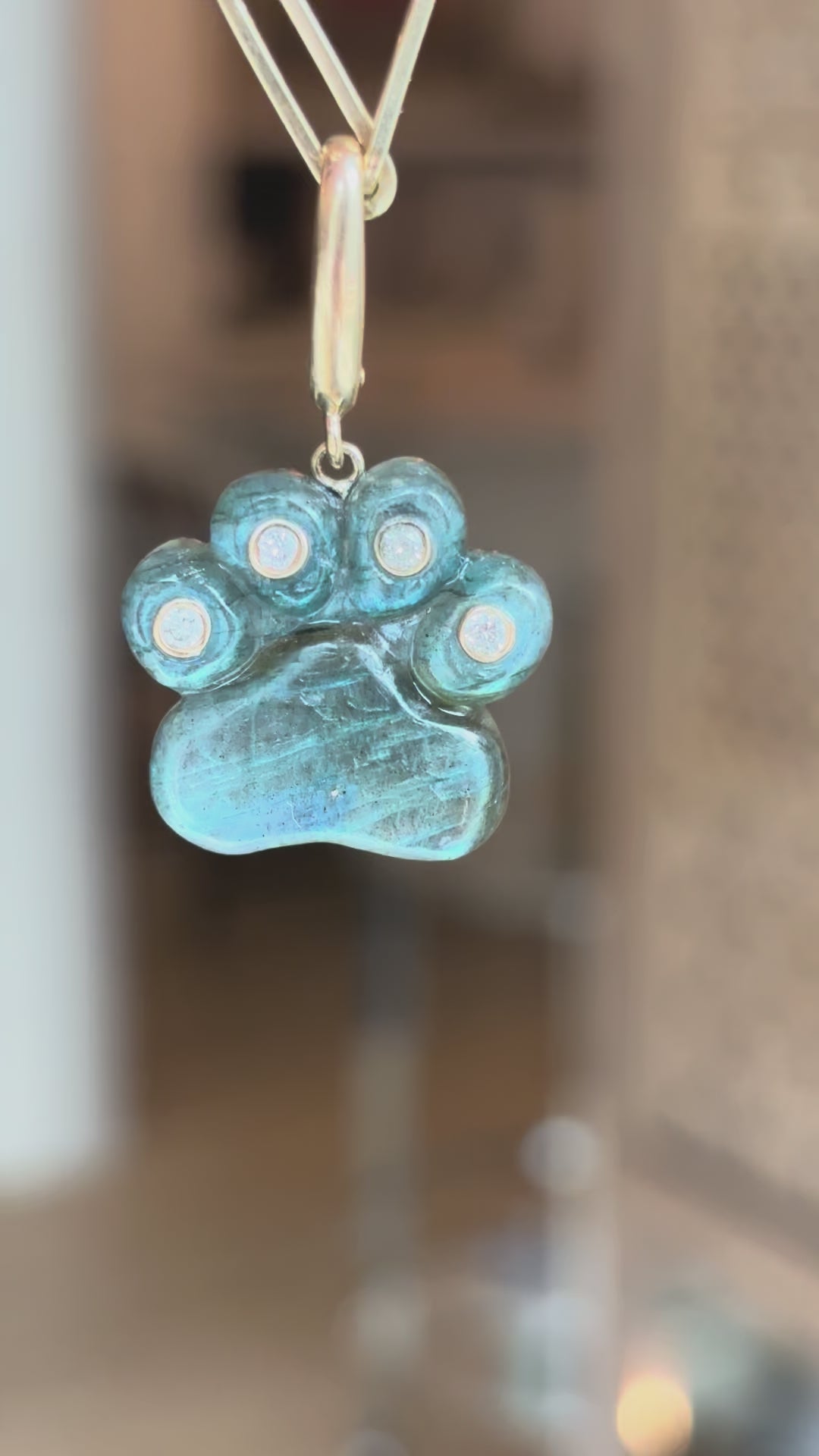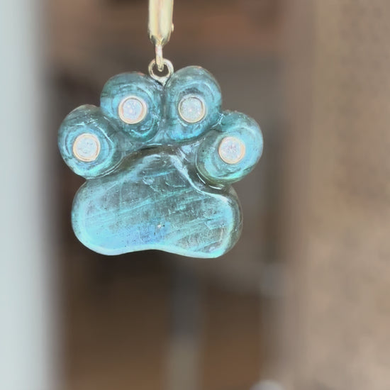 Dog Paw Pendant, Labradorite & Diamonds