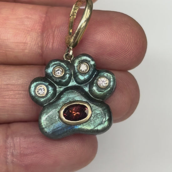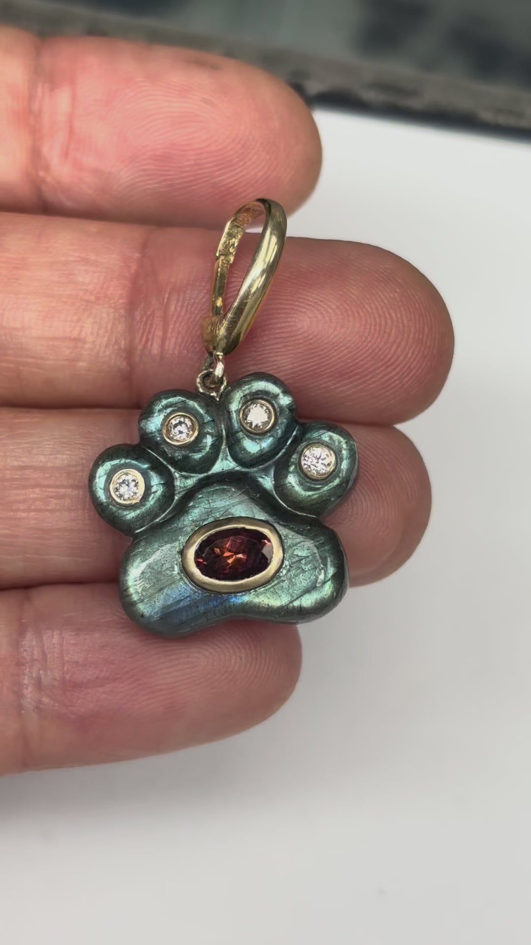 Dog Paw Pendant, Labradorite with Diamonds & Tourmaline