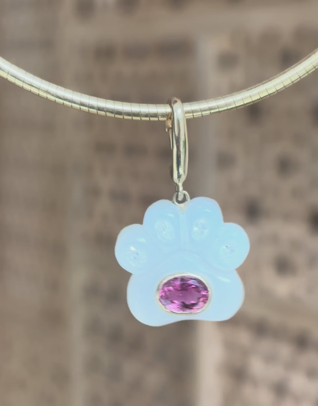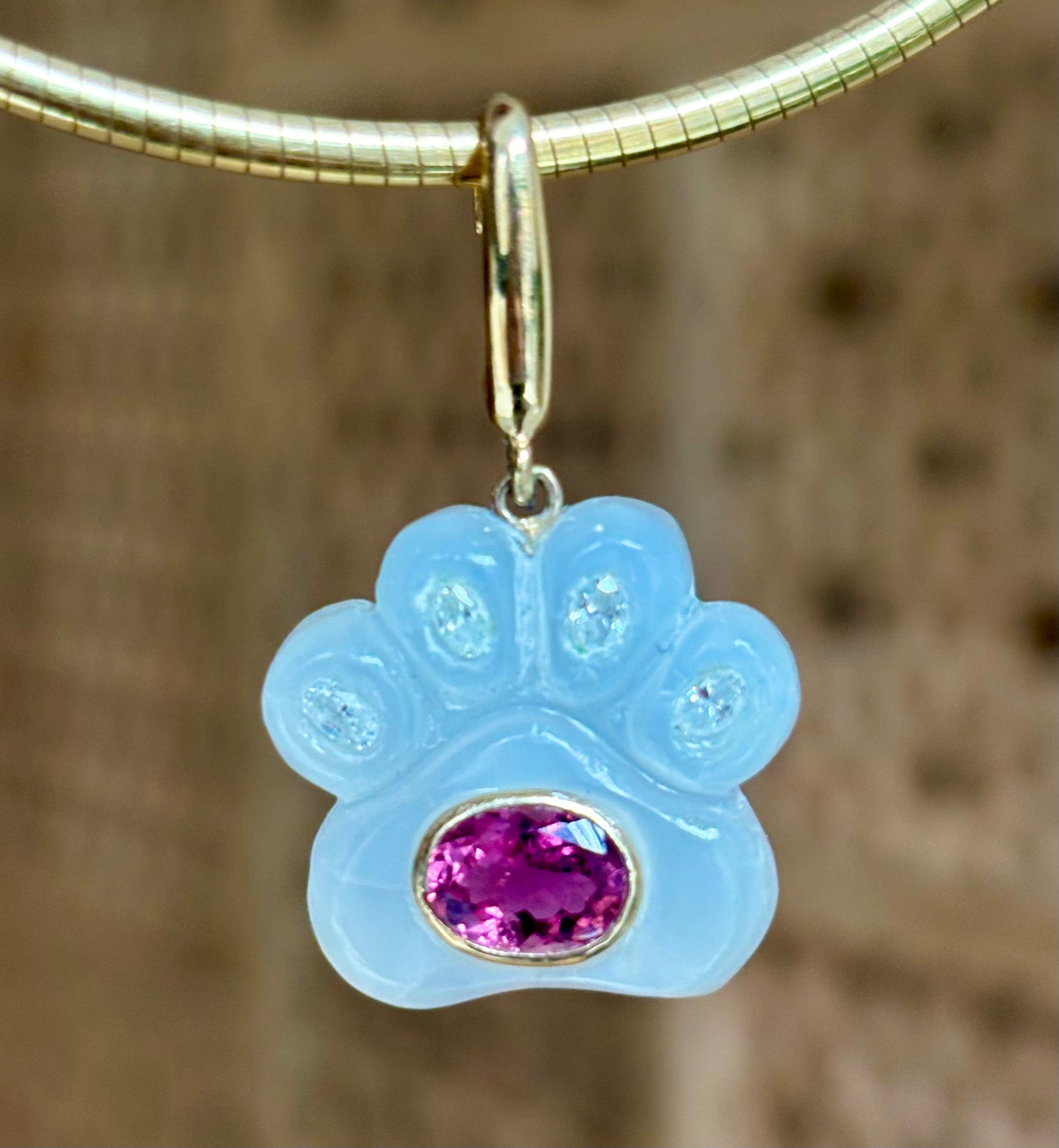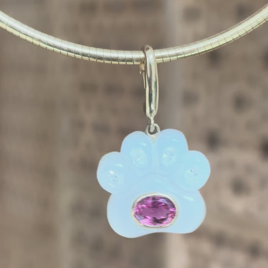 Dog Paw Pendant, Moonstone, Diamonds & Pink Tourmaline
