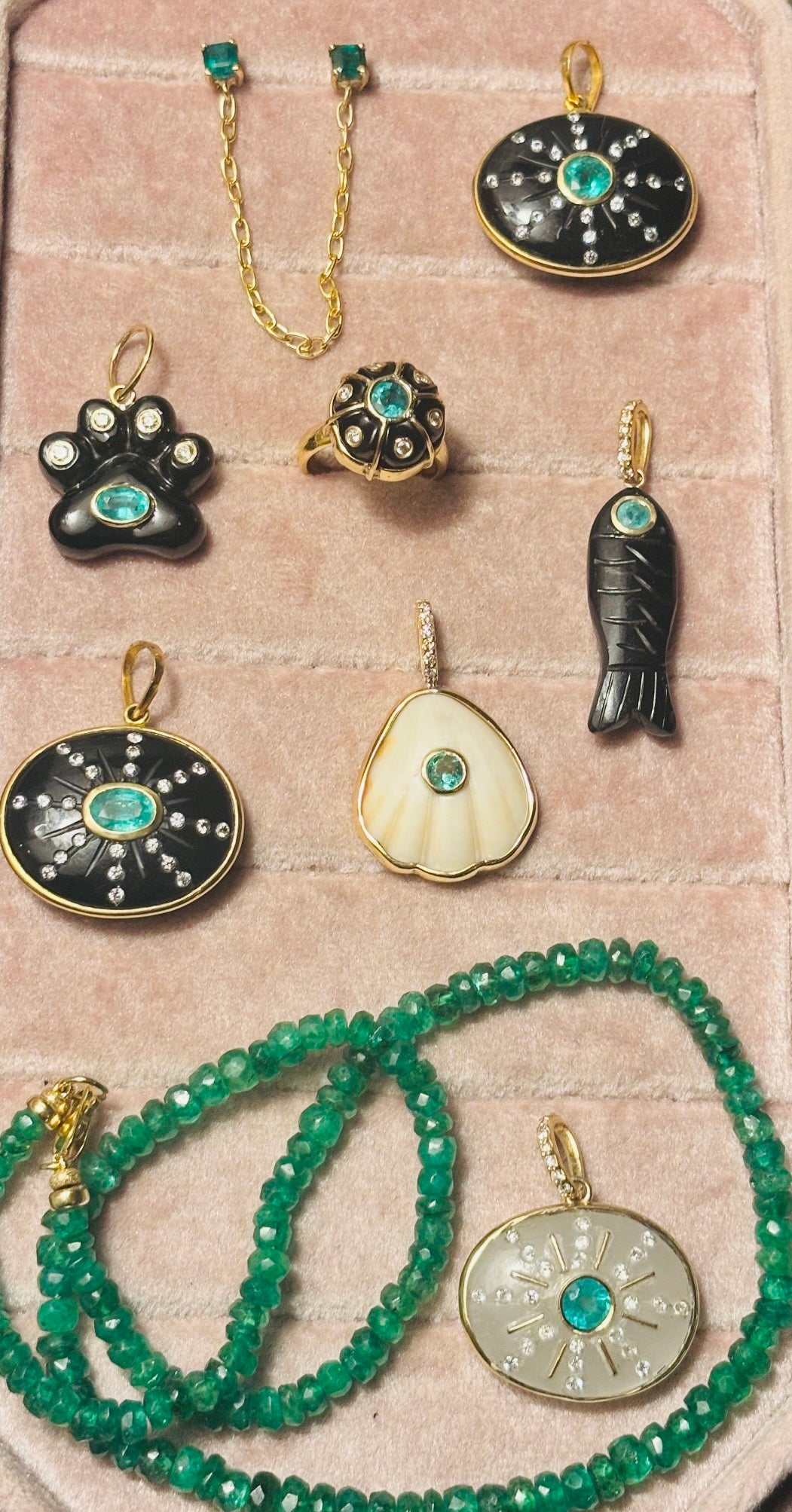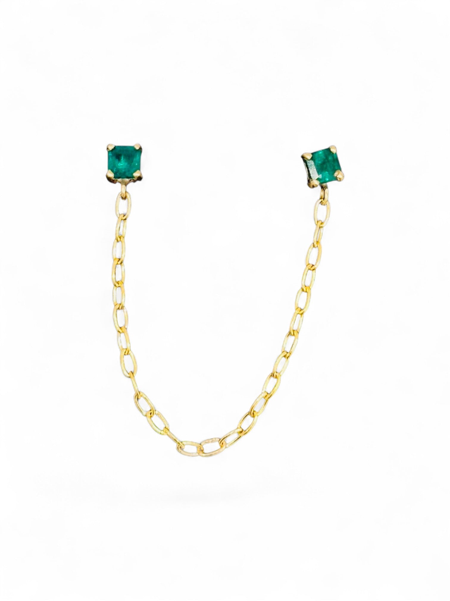 The emeralds are 4mm square and the length of the earring is 3.25”.