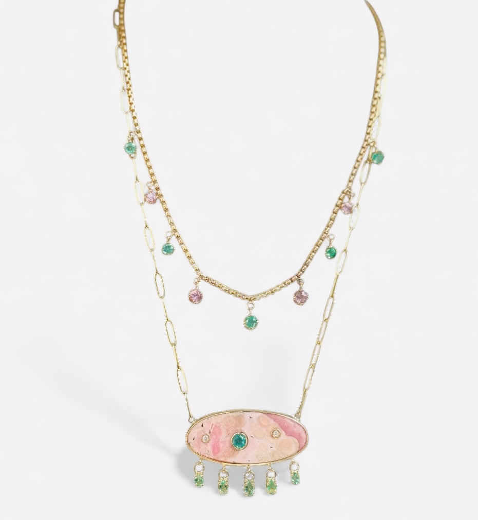 Rhodochrosite is known as the “Stone of the Compassionate Heart”. It was chosen as the primary gemstone for this collection called: Heart Chakra.