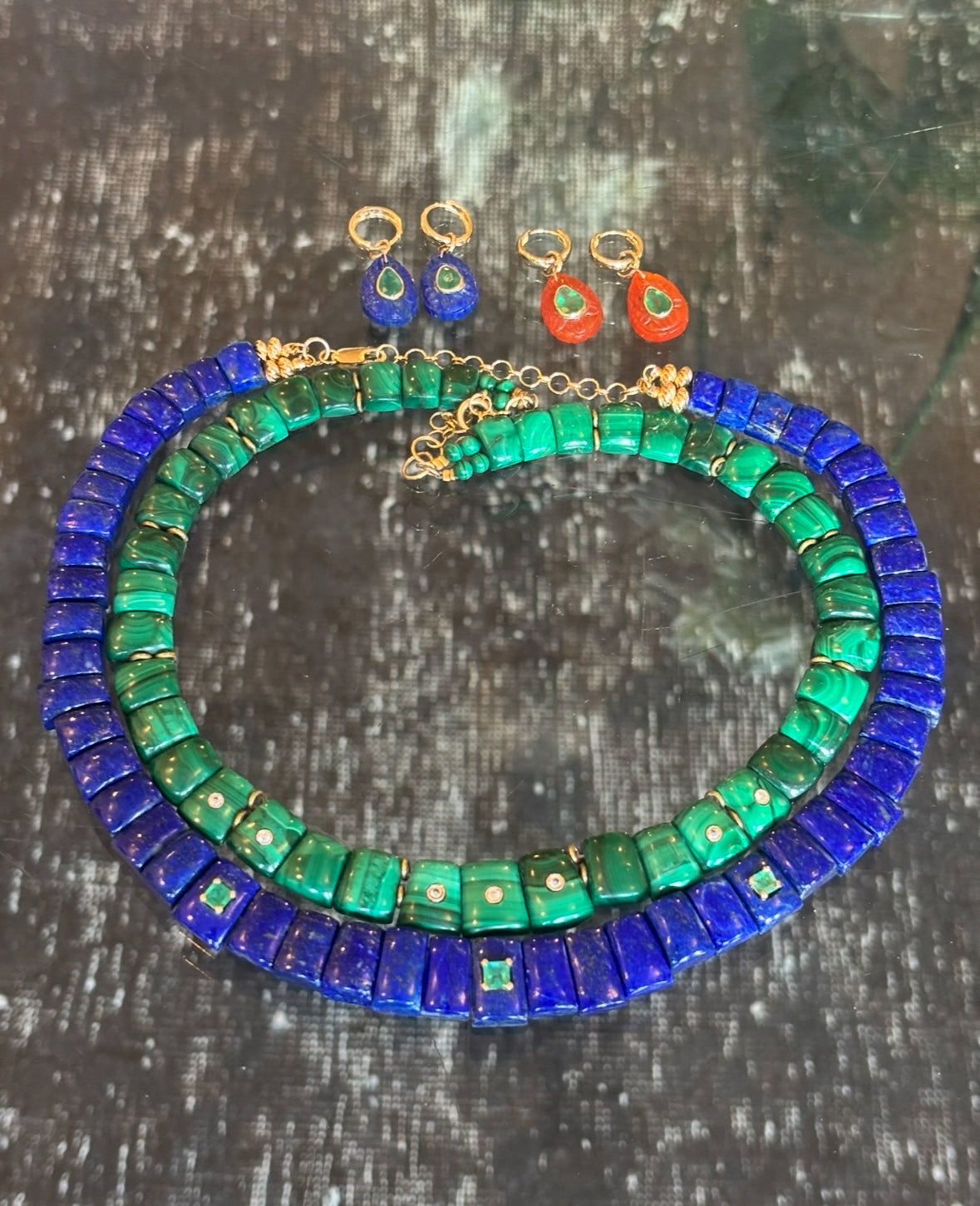 Carnelian, Emerald, Diamonds, 14k Gold
