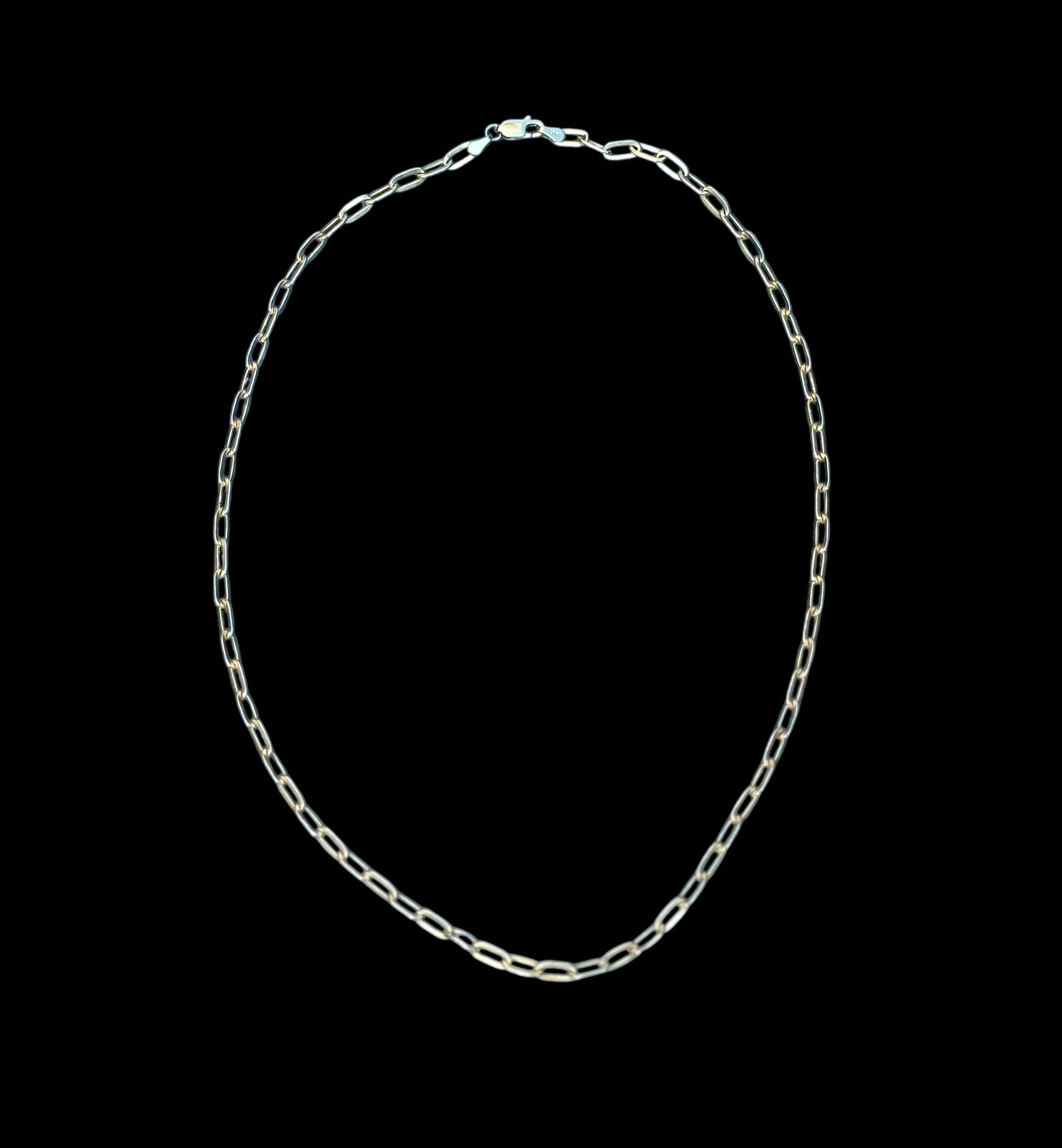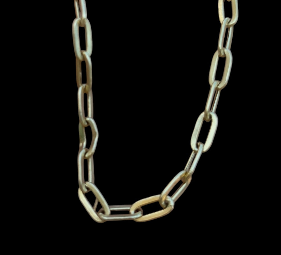 18” of paperclip gold chain with lobster clasp.