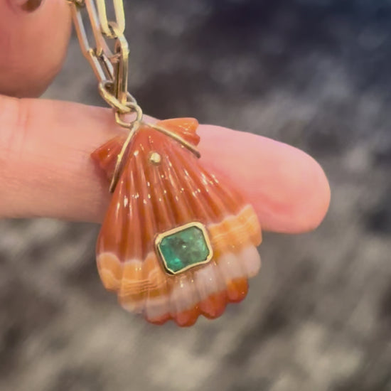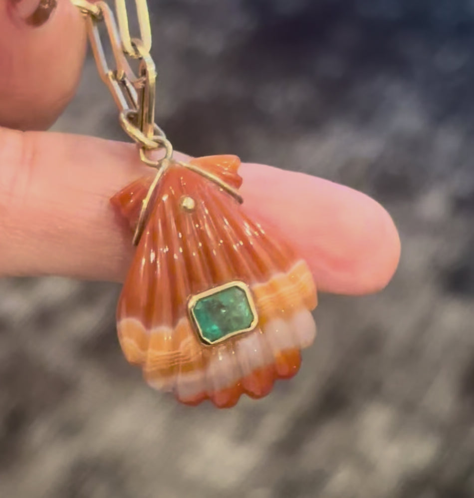 Laguna Agate Shell Pendant with Emerald