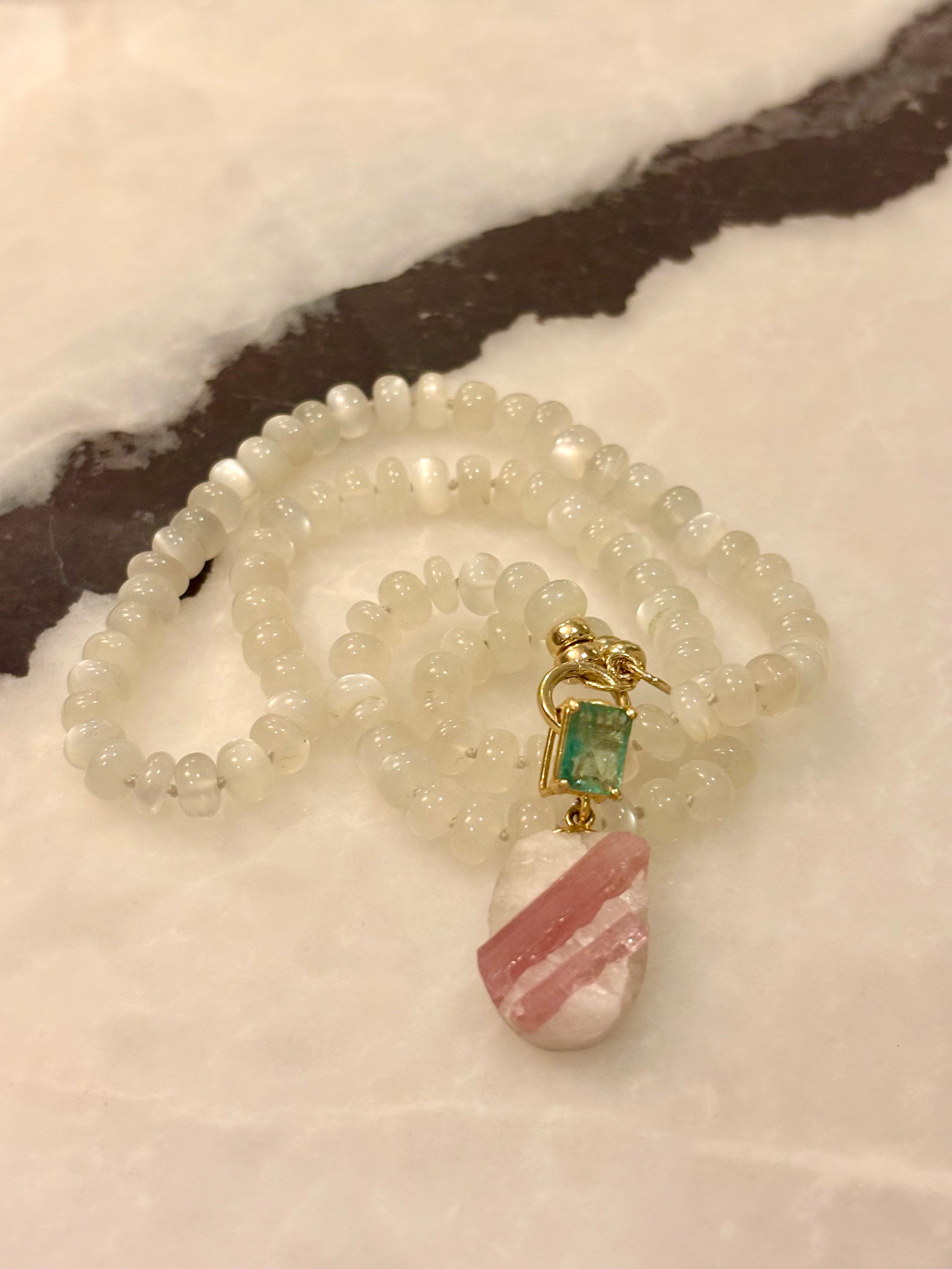 This necklace looks great paired with one of our moonstone pendants or Candy Dish Pendants. It’s a beautiful addition to any necklace stack, but is also elegant on its own.