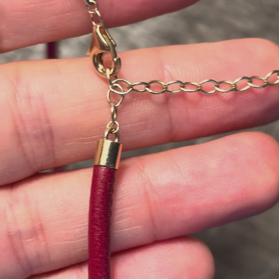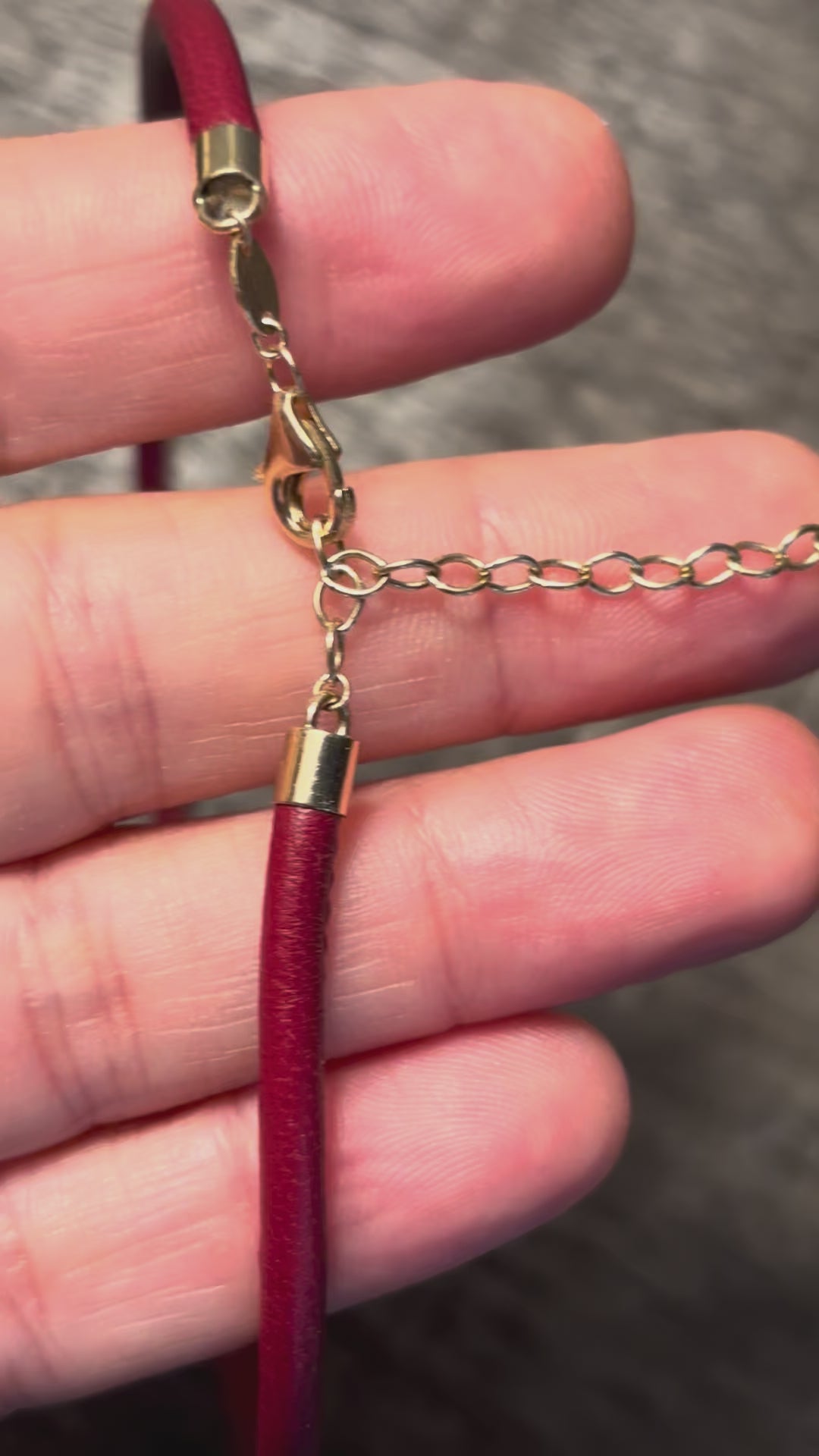 It’s 14” with a 2” 14k gold adjustable chain- so you can wear this cord necklace anywhere from 14-16”.