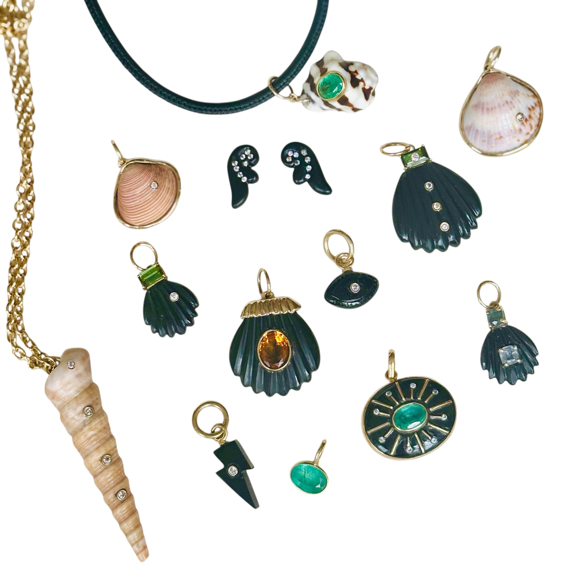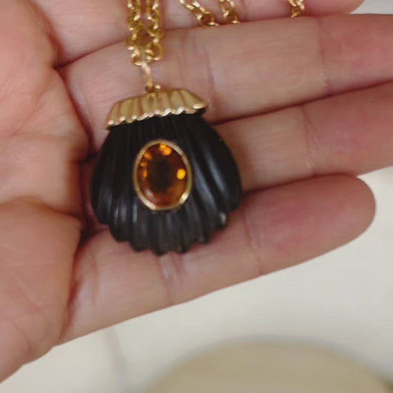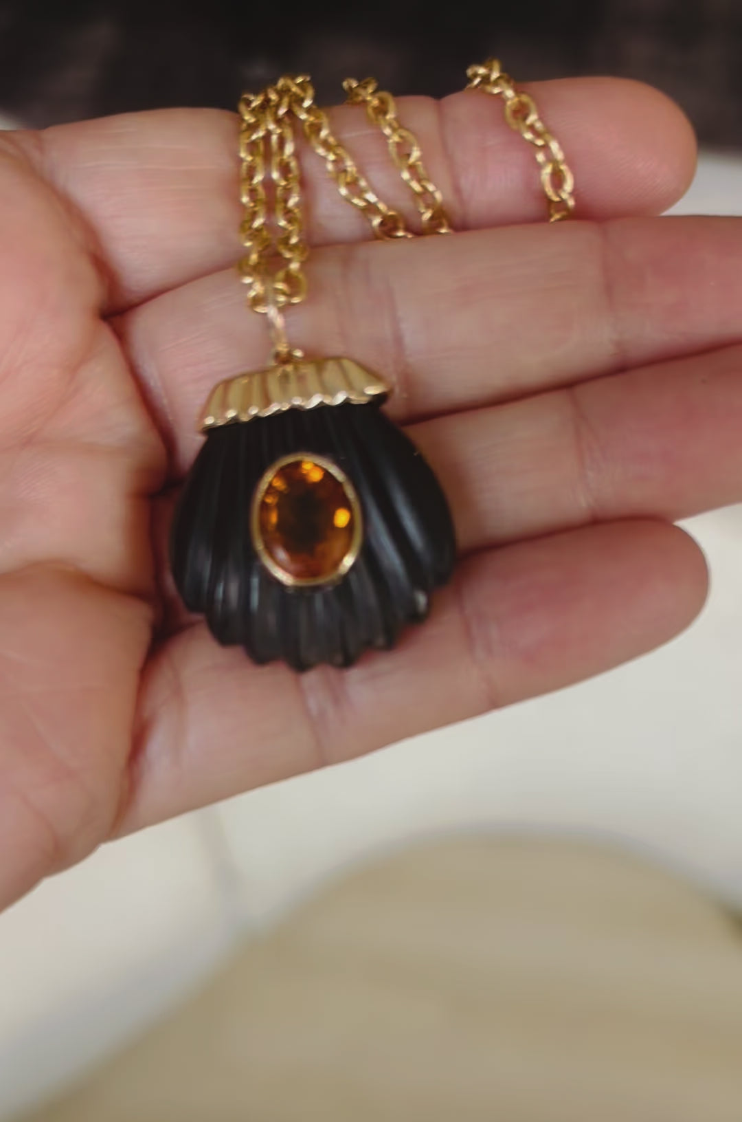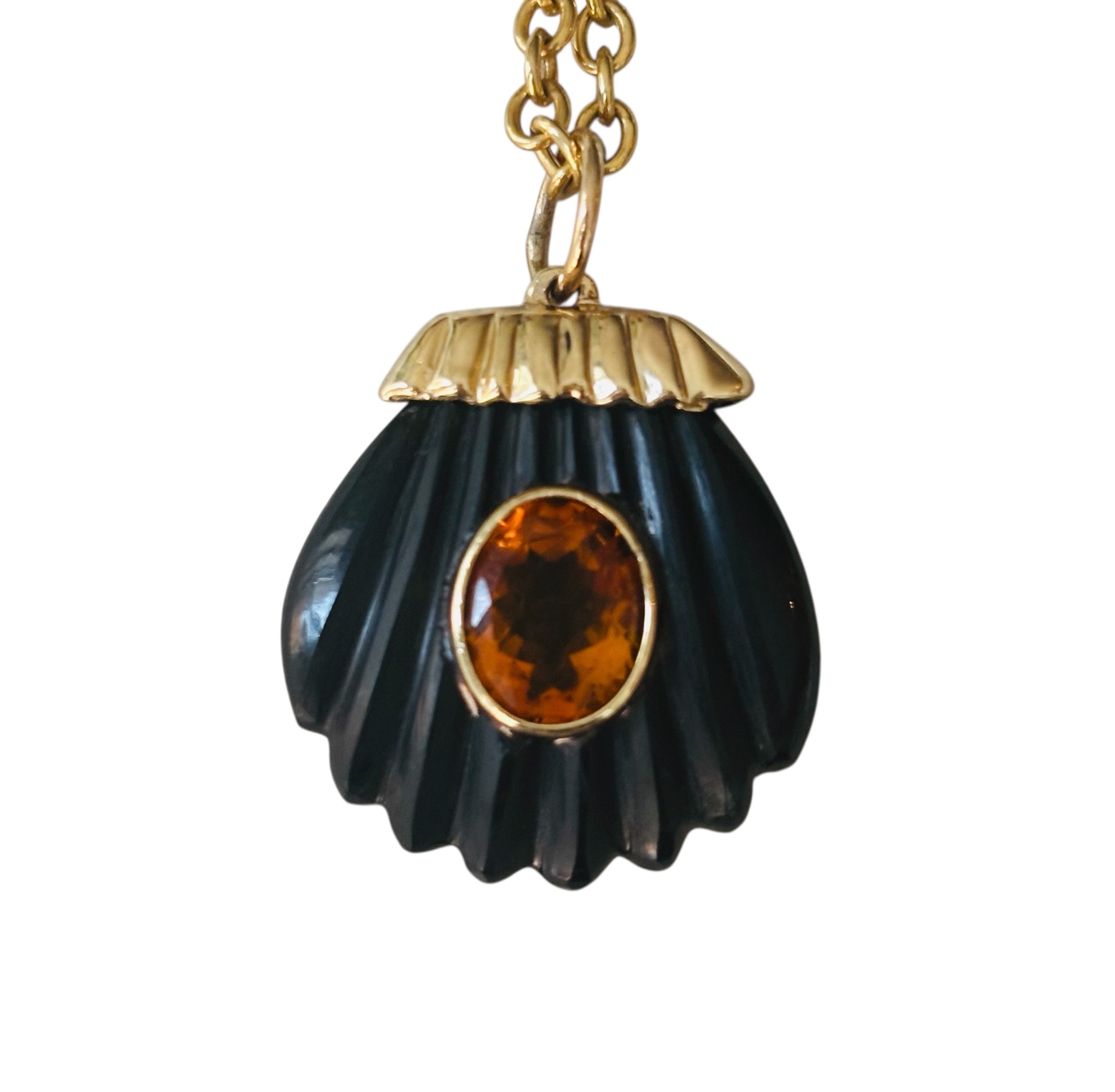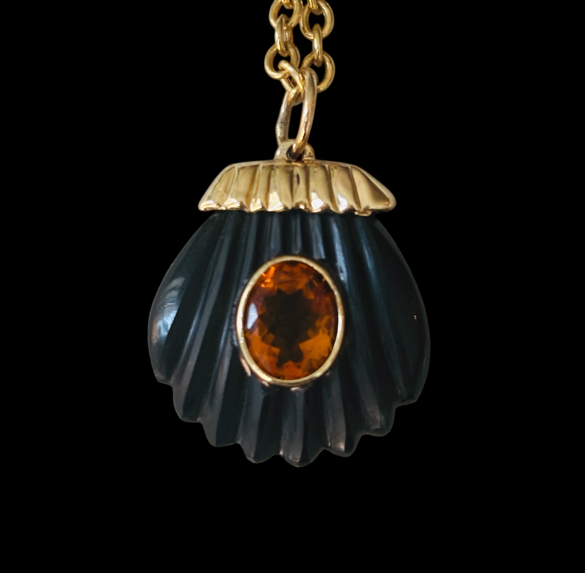 Sea Shell Pendant, Black Onyx with Citrine & 14k Gold