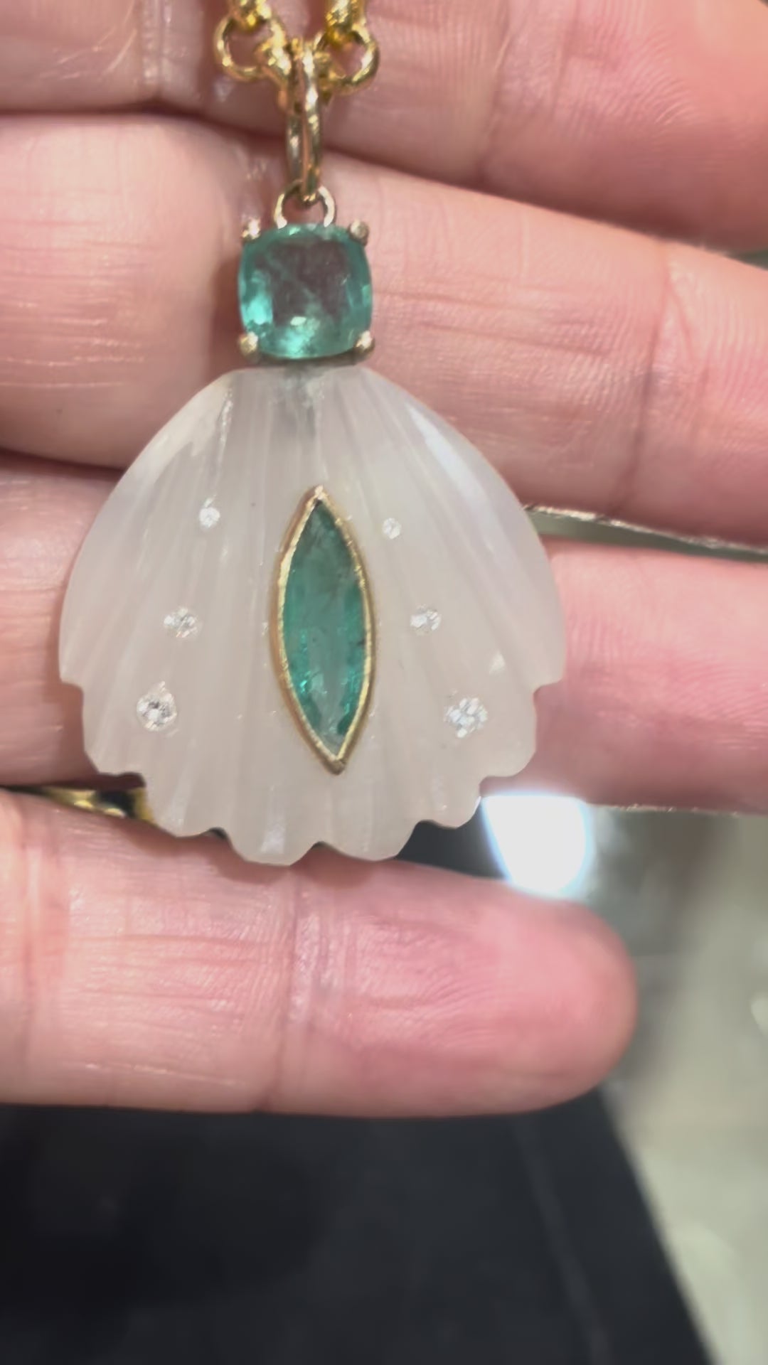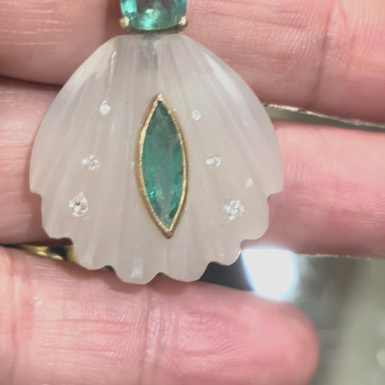 Sea Shell Pendant, Moonstone, Emeralds & Diamonds