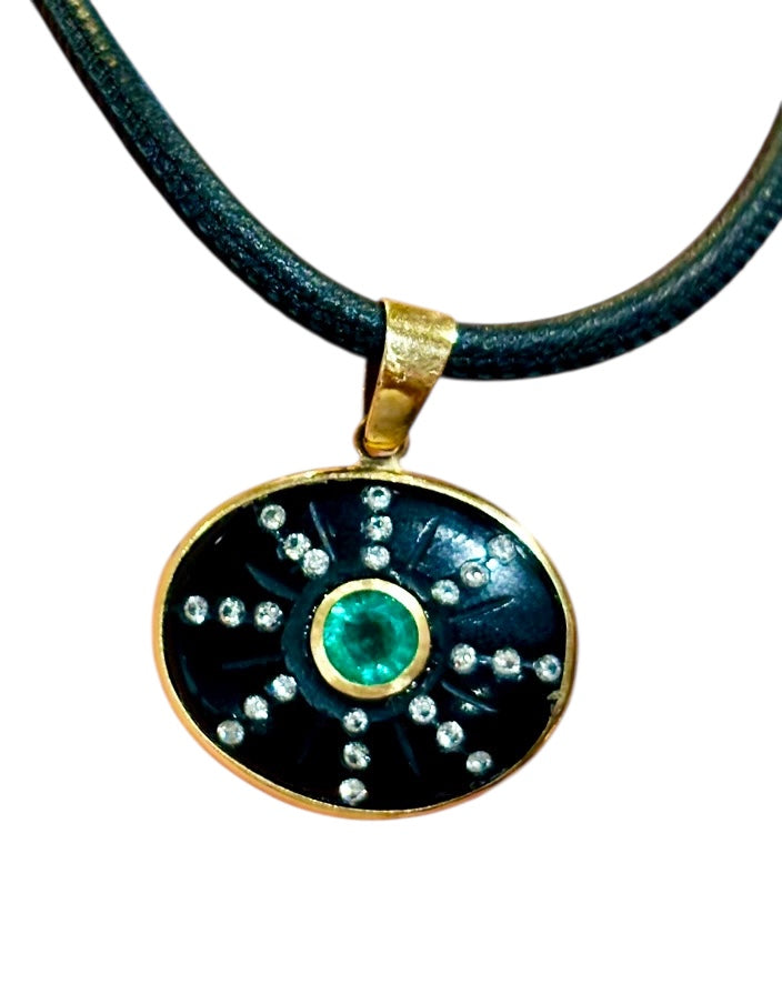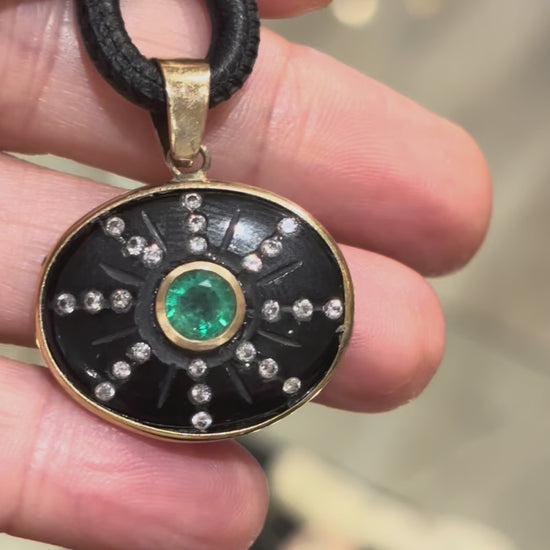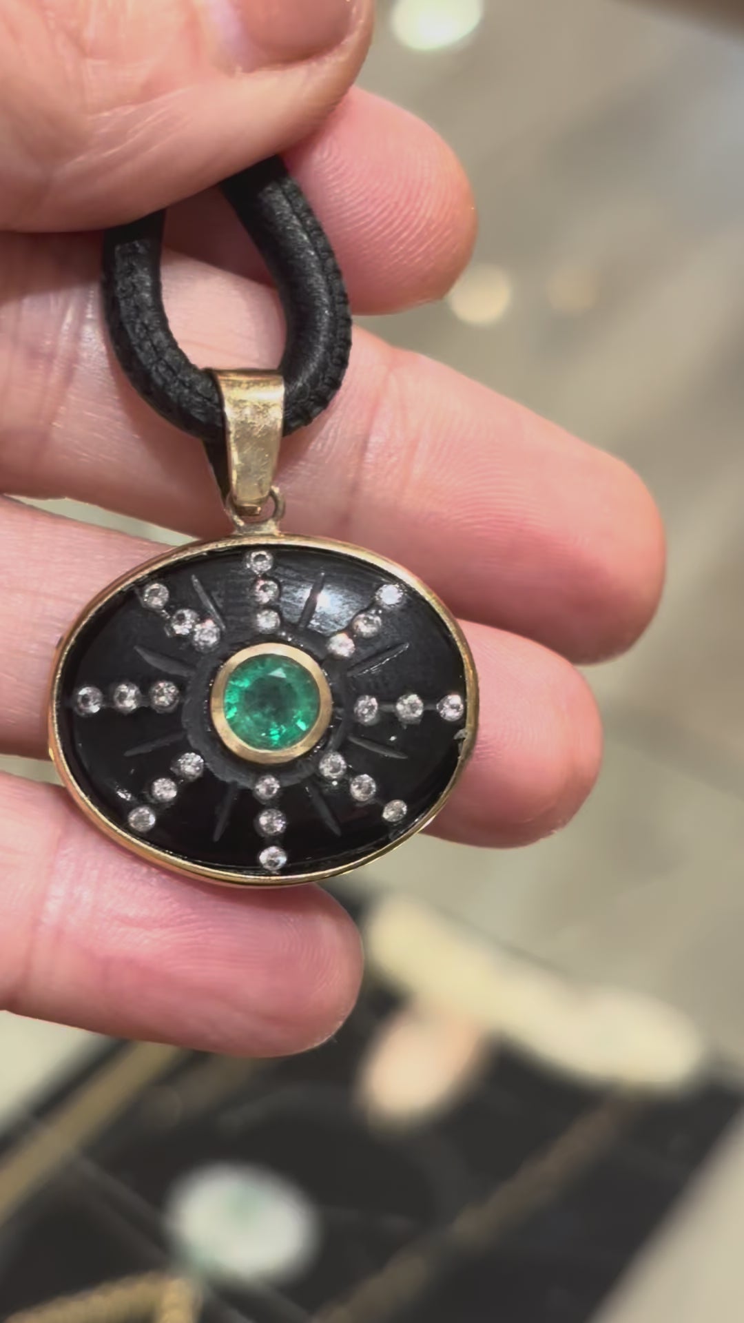 SOL Pendant, Black Onyx, Emerald & Diamonds