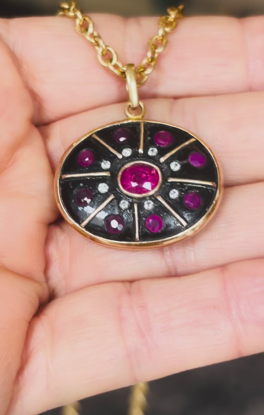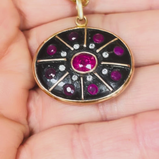 SOL Pendant, Black Onyx, Rubies & Diamonds