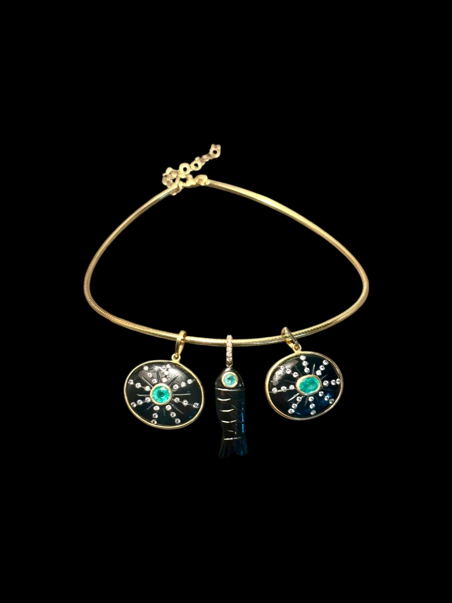 Black Onyx, Emeralds, Diamonds & 14k Gold