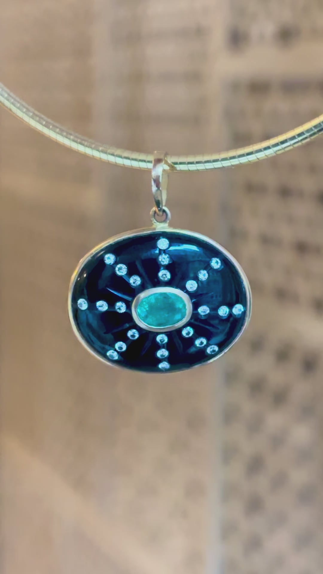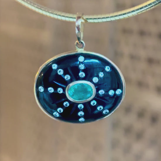 SOL Pendant, Black Onyx with Oval Emerald & Diamond Sunrays