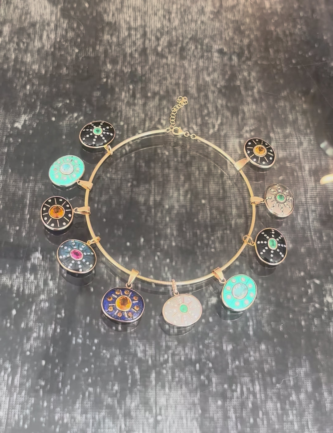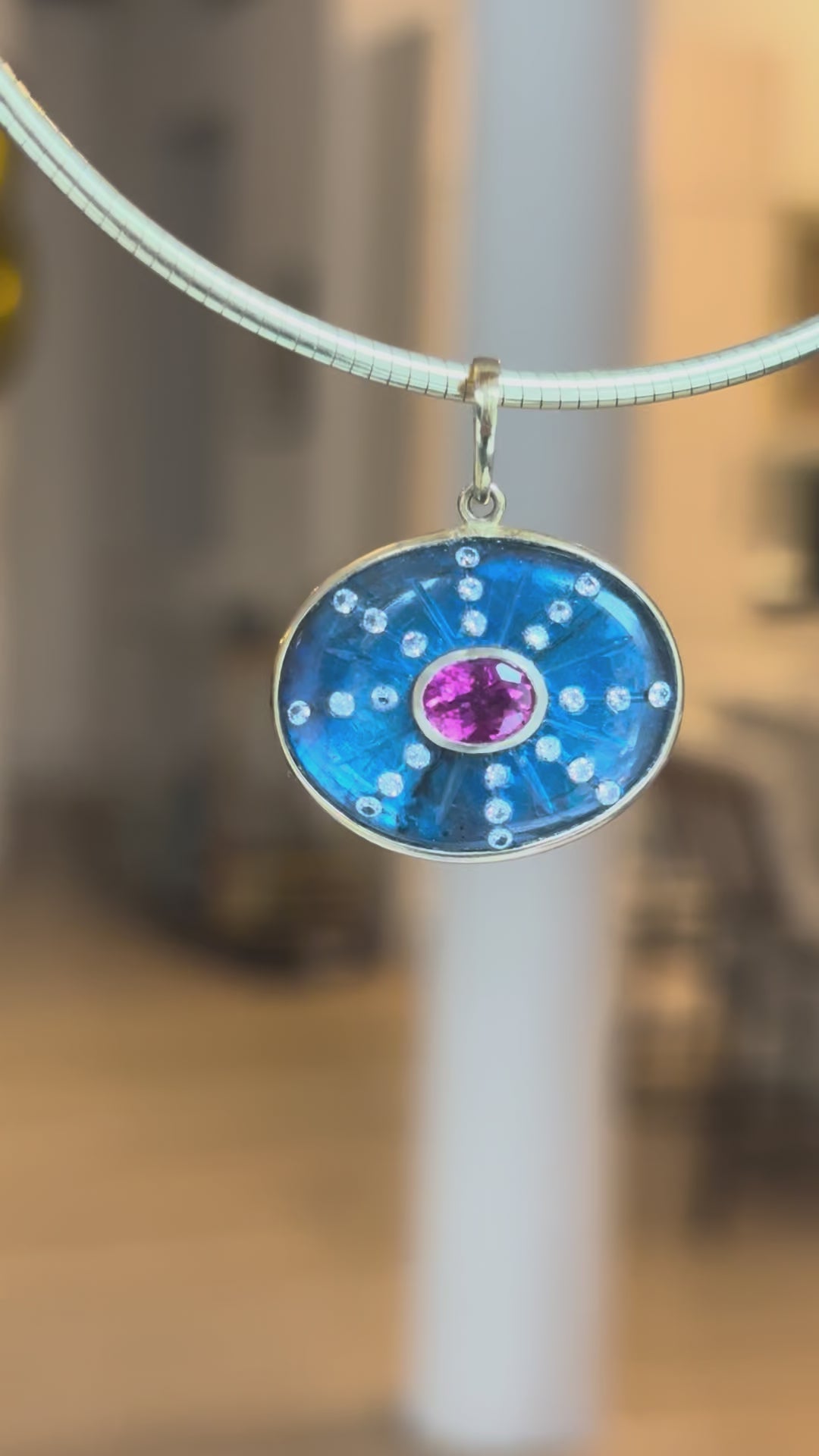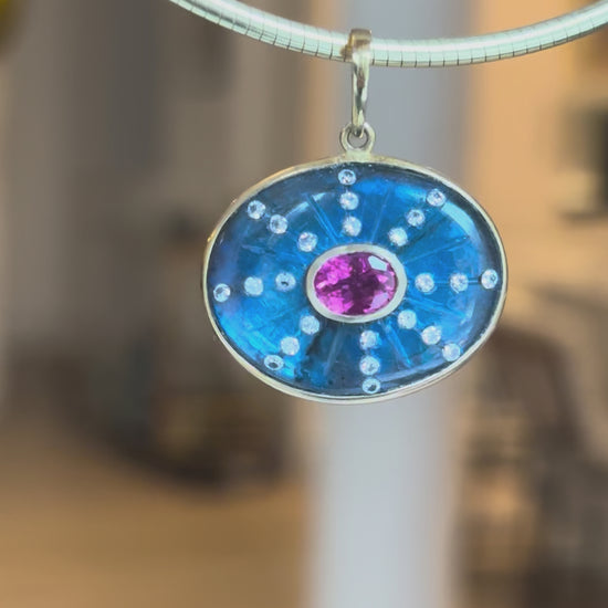 SOL Pendant, Labradorite with Pink Tourmaline & Diamonds