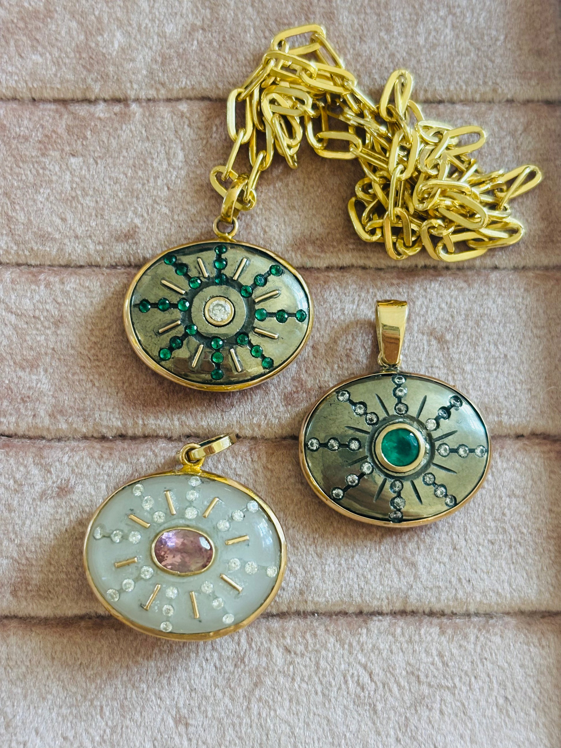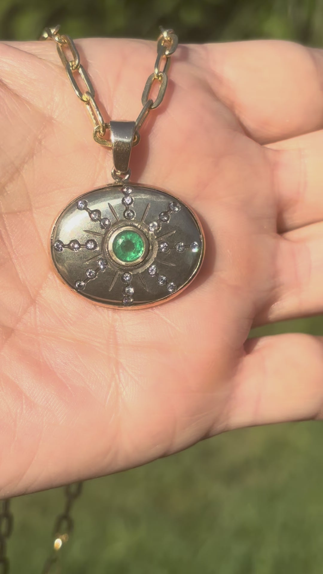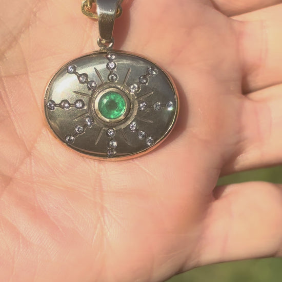 SOL Pendant, Pyrite, Emerald & Diamonds