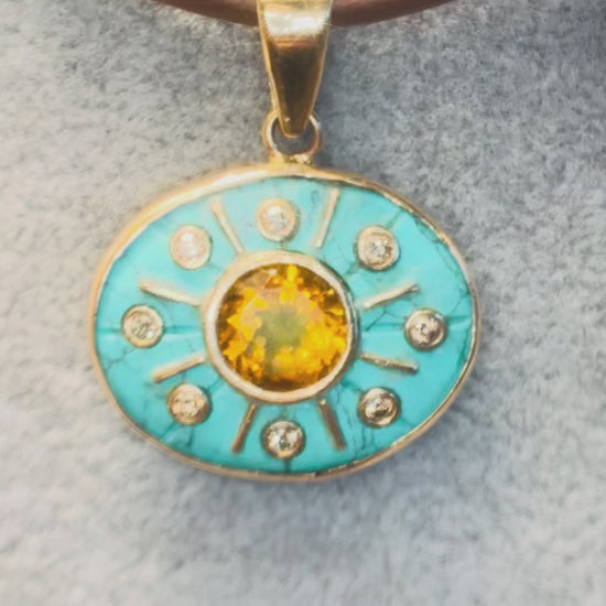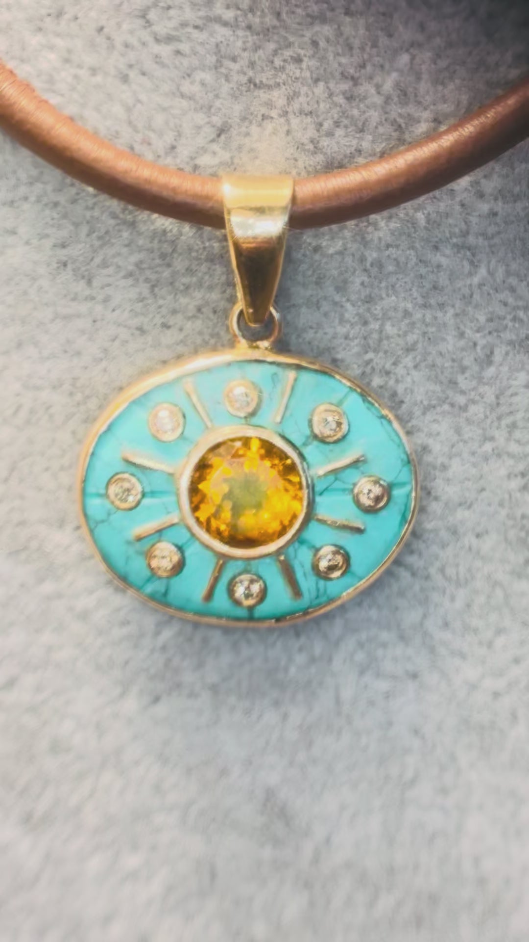 SOL Pendant, Turquoise with Citrine & Champagne Diamonds