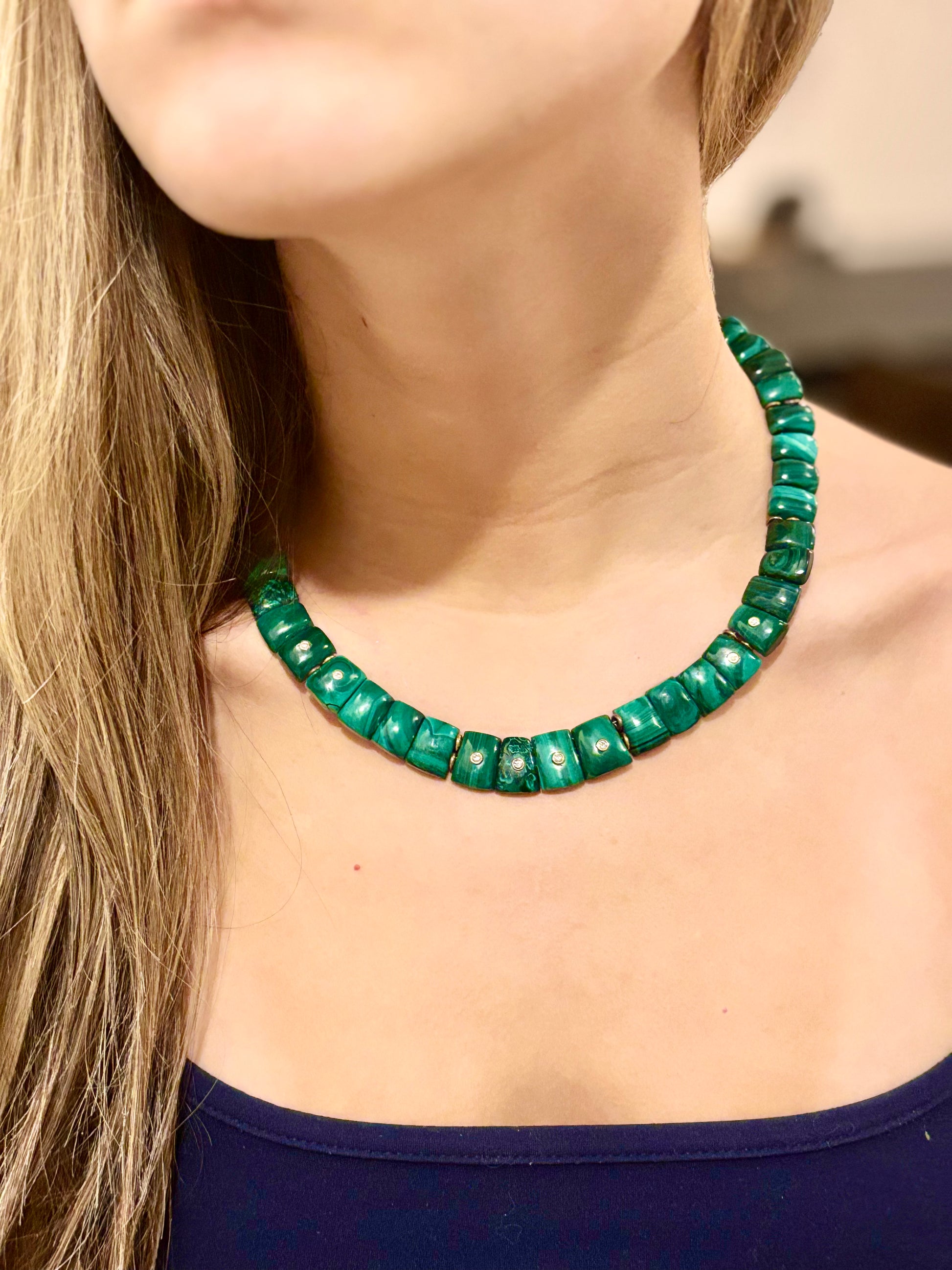 Malachite and diamond collar necklace