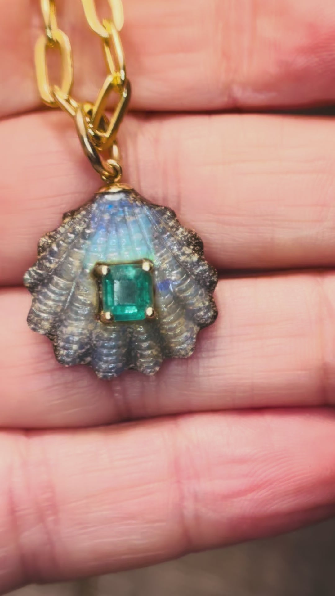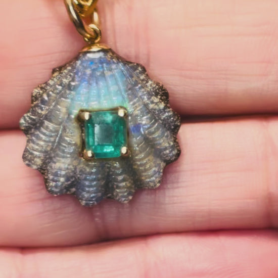 Australian Opal Shell Pendant with Emerald