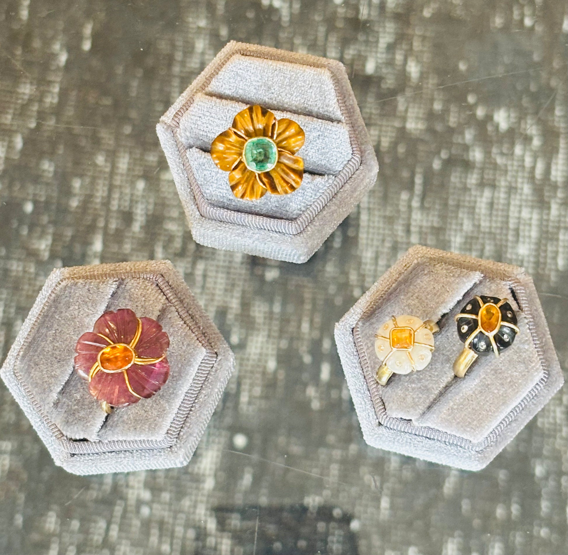 This flower ring is a one-of-a-kind. It can be worn dressed down with jeans or dressed up for a night on the town