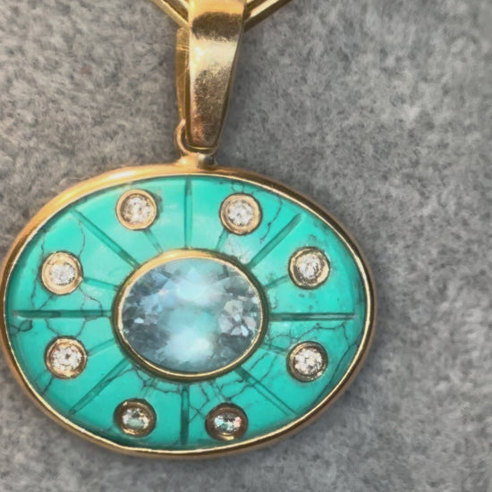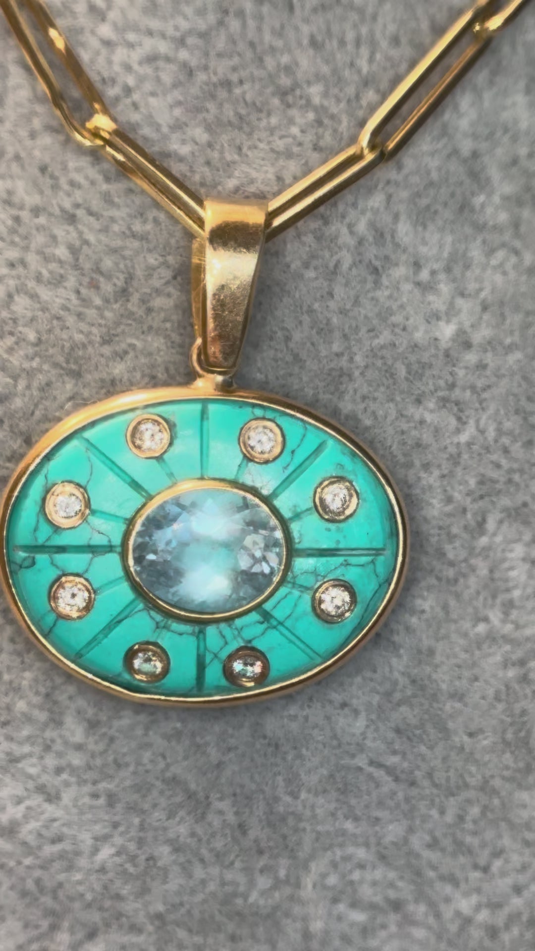 SOL Pendant, Turquoise, Sky Blue Topaz & Diamonds